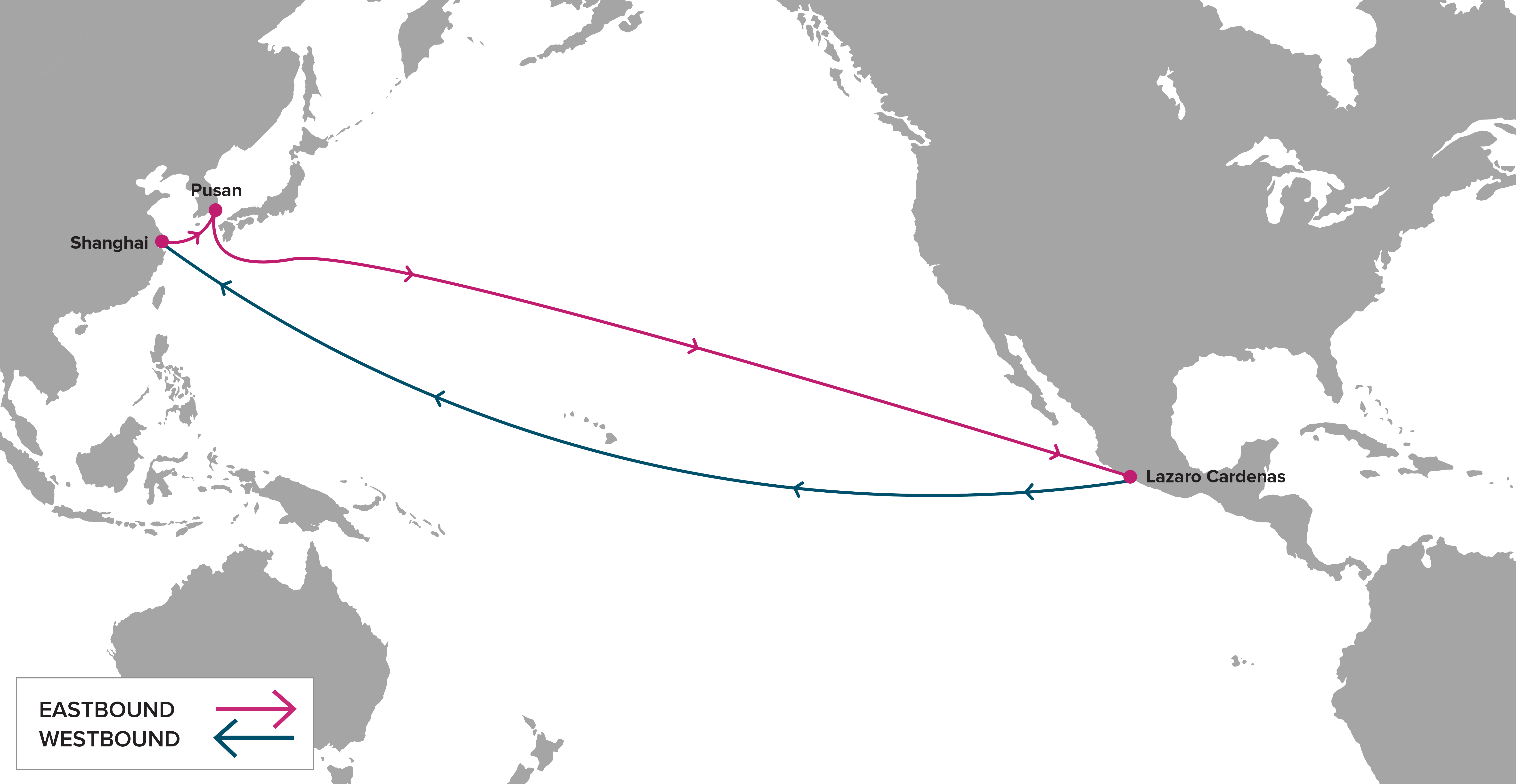 Port Rotation: Shanghai - Busan - Lazaro Cardenas - Shanghai