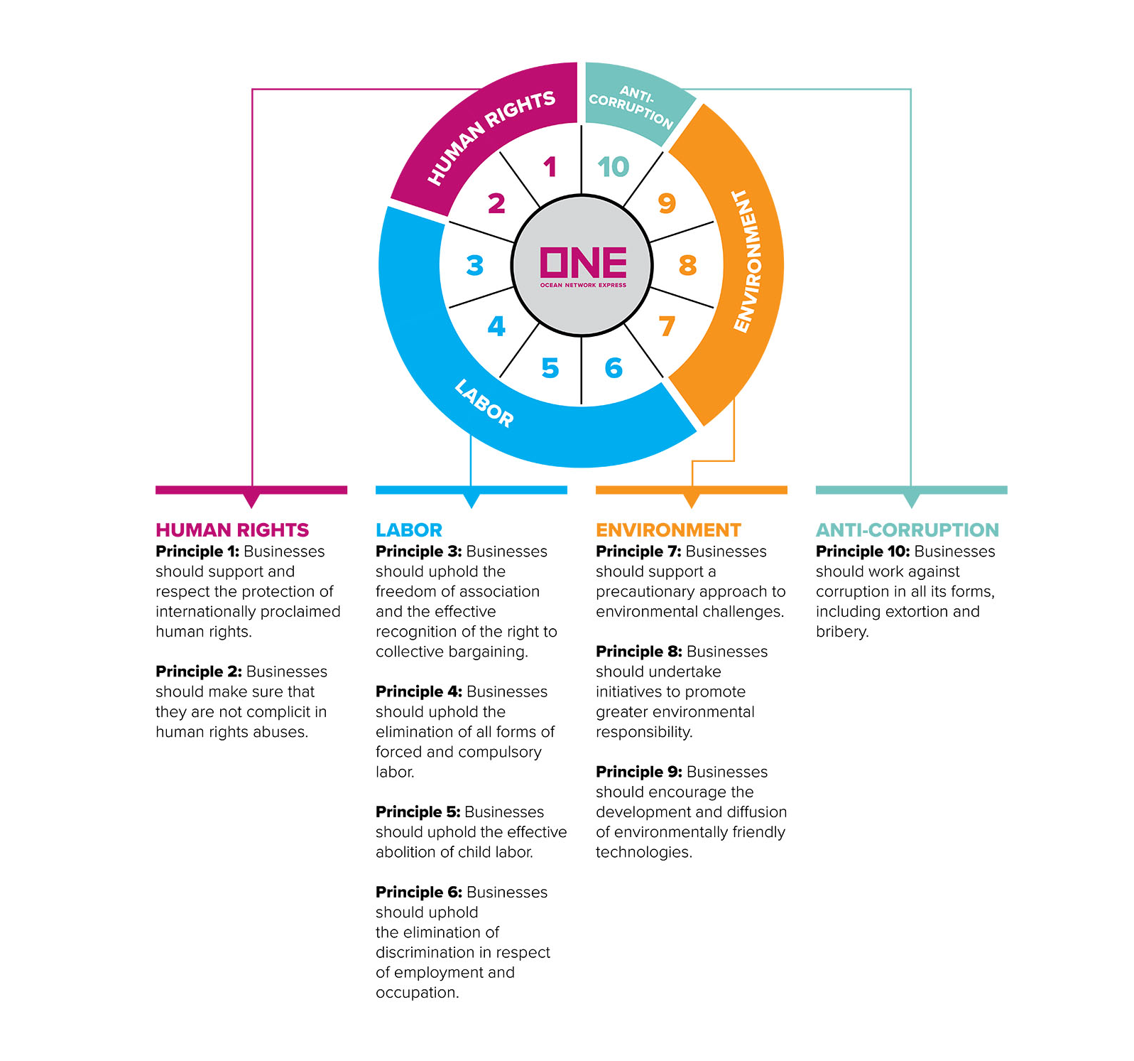 As a member, ONE supports the ten UNGC Principles and has pledged to adopt and promote sustainable and responsible business practices. This means operating in ways that, at a minimum, meet fundamental responsibilities in the areas of human rights, labour, environment and anti-corruption.